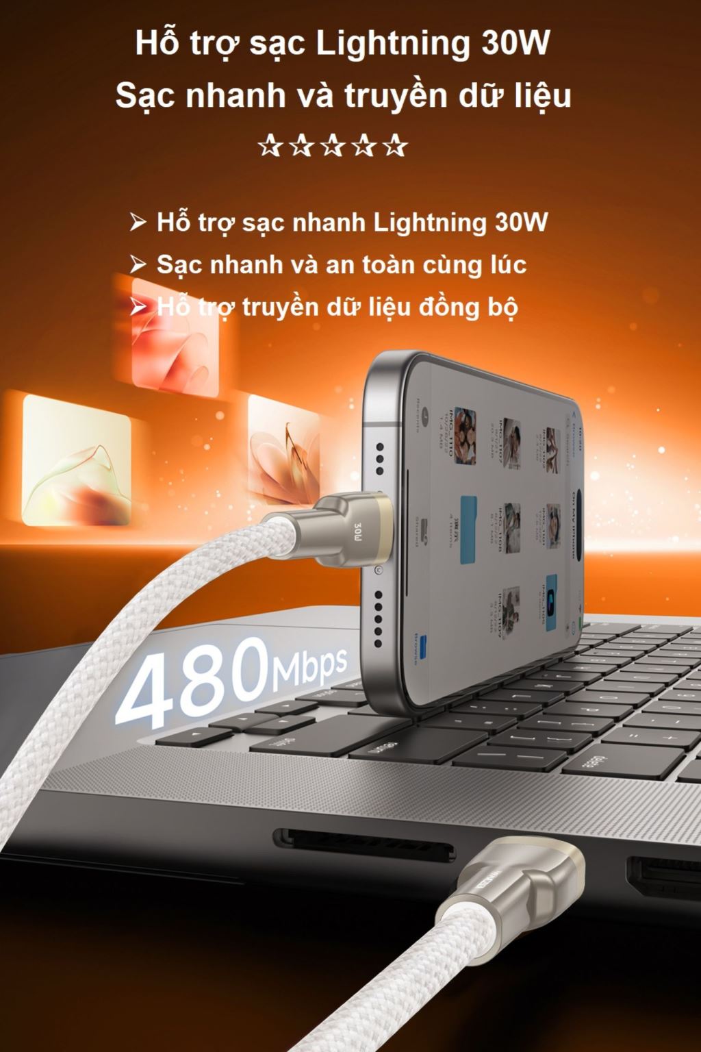 Thông số kỹ thuật Cáp sạc nhanh Vivumax 3A C to Lightning 30W (VM-CB|I19)