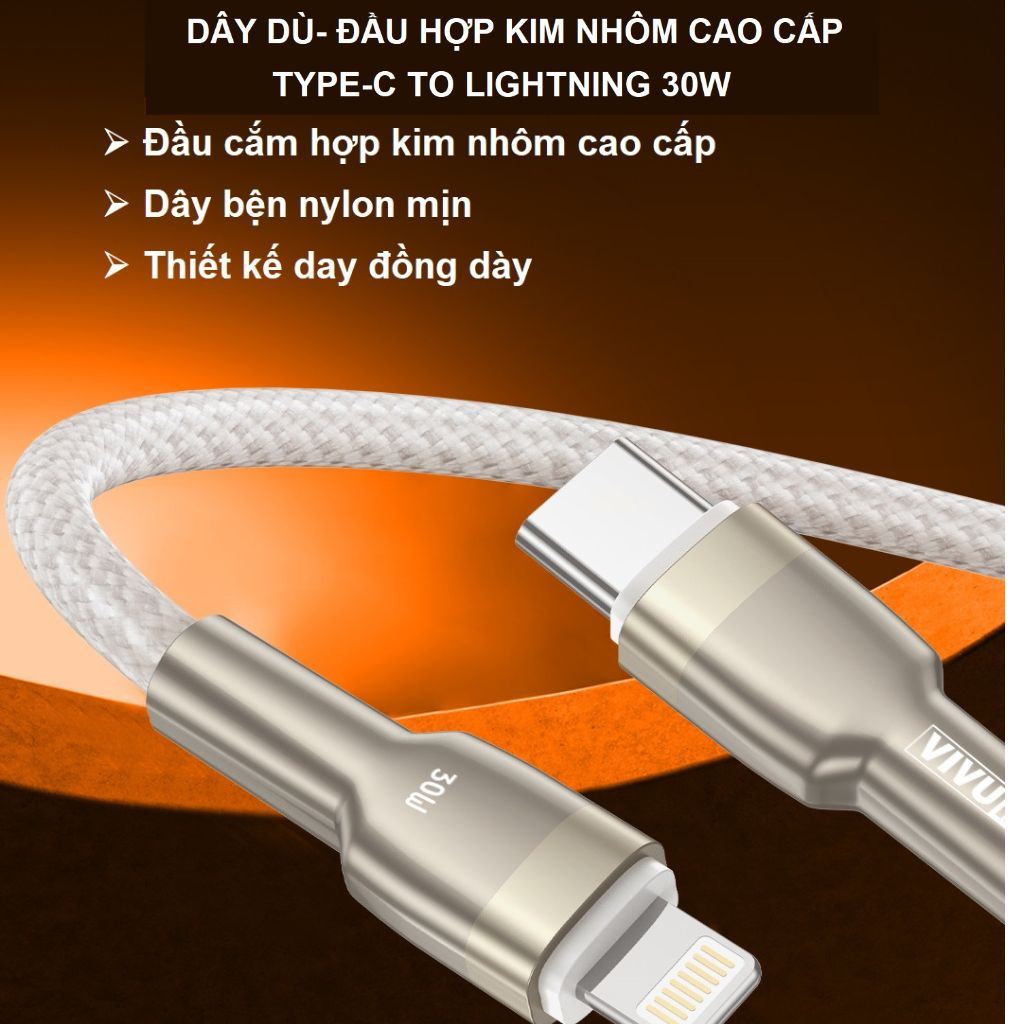 Cáp Sạc Nhanh Type-C to Lightning Vivumax CI19 30W Dây Bện Dù Đầu Hợp Kim Nhôm