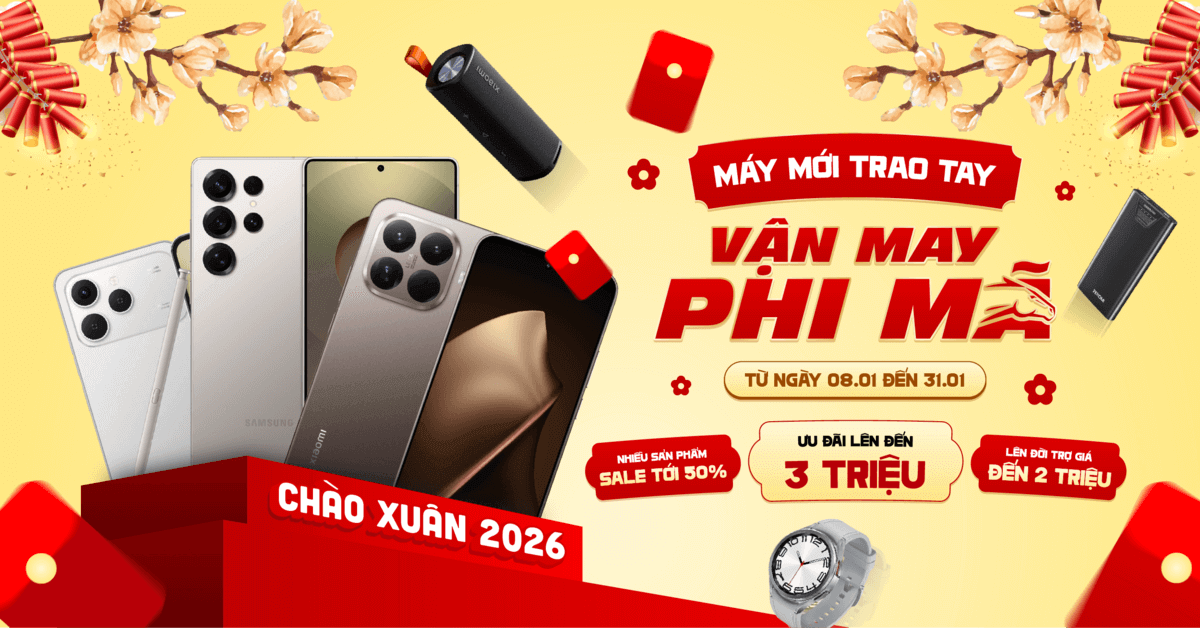 Khuyến mãi đặc biệt, mừng năm mới 2026. Diễn ra từ 8/1 - 31/1, Clickbuy giảm giá hàng loạt sản phẩm điện thoại và phụ kiện chính hãng. Nhiều sản phẩm giảm giá lên tới 50%. Dịp mua sắm không thể bỏ lỡ