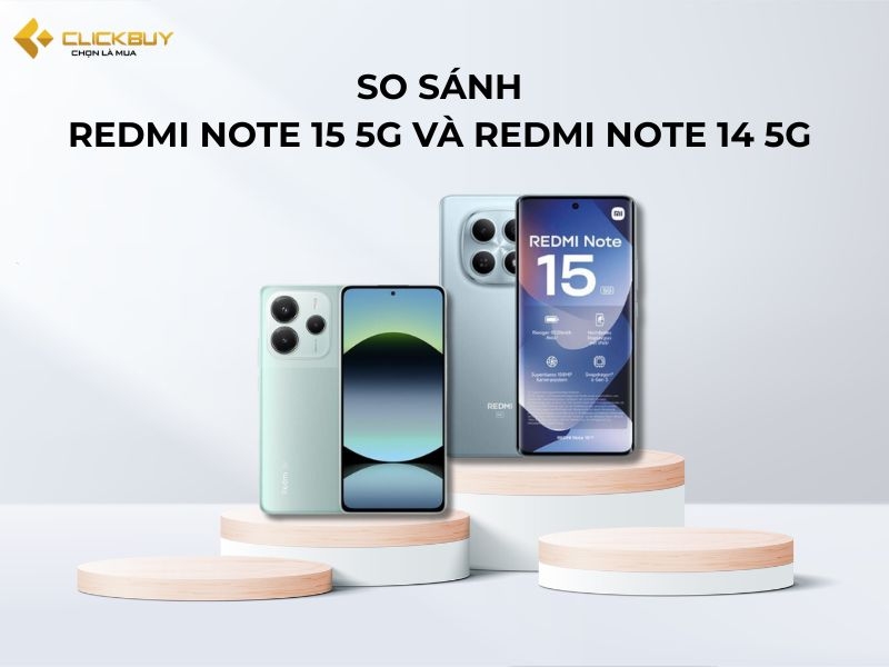 So sánh Redmi Note 15 5G và Redmi Note 14 5G đang là chủ đề được rất nhiều người dùng quan tâm khi cả hai đều thuộc dòng Redmi Note bán chạy, mức giá dễ tiếp cận nhưng lại có sự khác biệt rõ rệt về hiệu năng, pin và trải nghiệm sử dụng. Vậy Redmi Note 15 5G khác gì Redmi Note 14 5G, và nên chọn Redmi Note 15 5G hay Redmi Note 14 5G trong thời điểm hiện tại. Cùng Clickbuy tìm hiểu chi tiết trong bài viết dưới đây để có câu trả lời rõ ràng nhất trước khi xuống tiền.