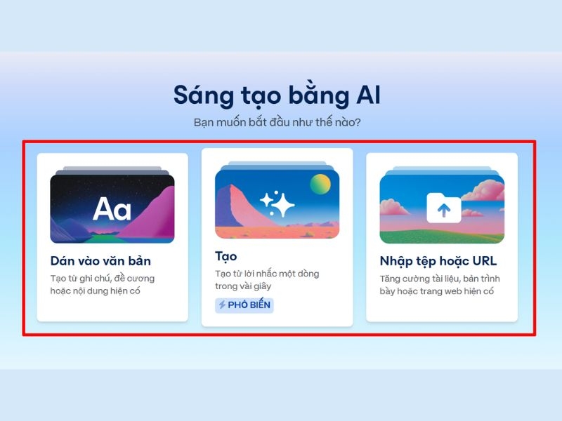 Người dùng chỉ cần nhập nội dung chính, AI sẽ tự động thiết kế bố cục, màu sắc và hình ảnh phù hợp.
